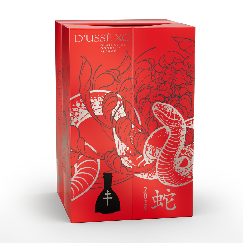 Celebrate the Year of the Snake in style with the D'ussé XO Cognac Limited Edition 2025. This luxurious release features D'ussé's renowned XO Cognac, a masterfully crafted blend aged for a minimum of 10 years in French oak barrels, packaged in a stunning limited-edition box to honor the Lunar New Year. The vibrant red and gold packaging, adorned with a symbolic snake design, embodies good fortune, longevity, and prosperity.