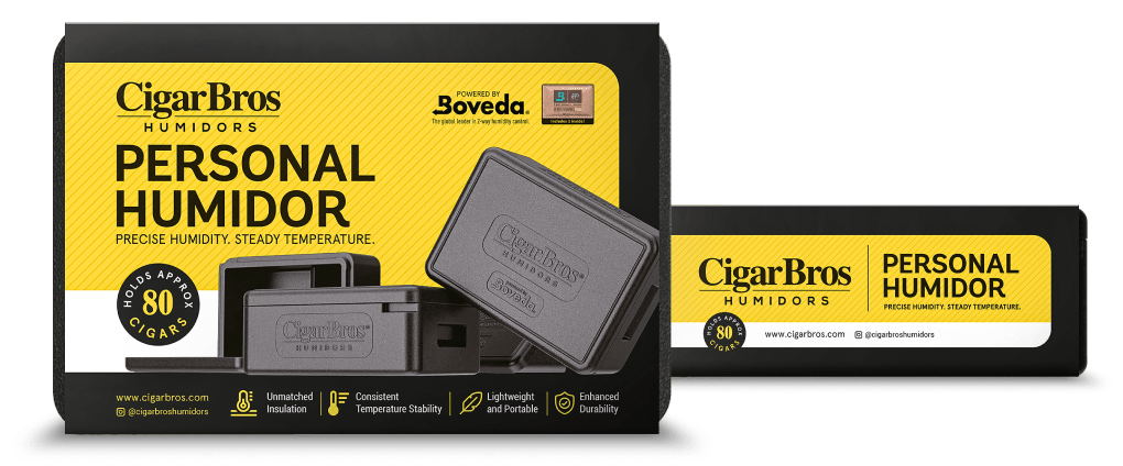 Designed for connoisseurs on the road, the CigarBros Personal Humidor offers the ultimate in cigar preservation. With its cutting-edge EPP construction, this humidor provides excellent insulation to keep the ideal humidity and temperature balance, preserving the best possible flavor for your cigars. Its sturdy, impact-resistant construction offers your cigars the best protection possible when traveling, and its moisture resistance prevents warping and mold growth. Customize this humidor to your preferences, take advantage of its easy upkeep, and enjoy its price without sacrificing usefulness or quality. includes a Boveda 60gr 69% Humidity Pack for optimal humidity control. With the CigarBros Personal Humidor, you can store cigars more luxuriously.