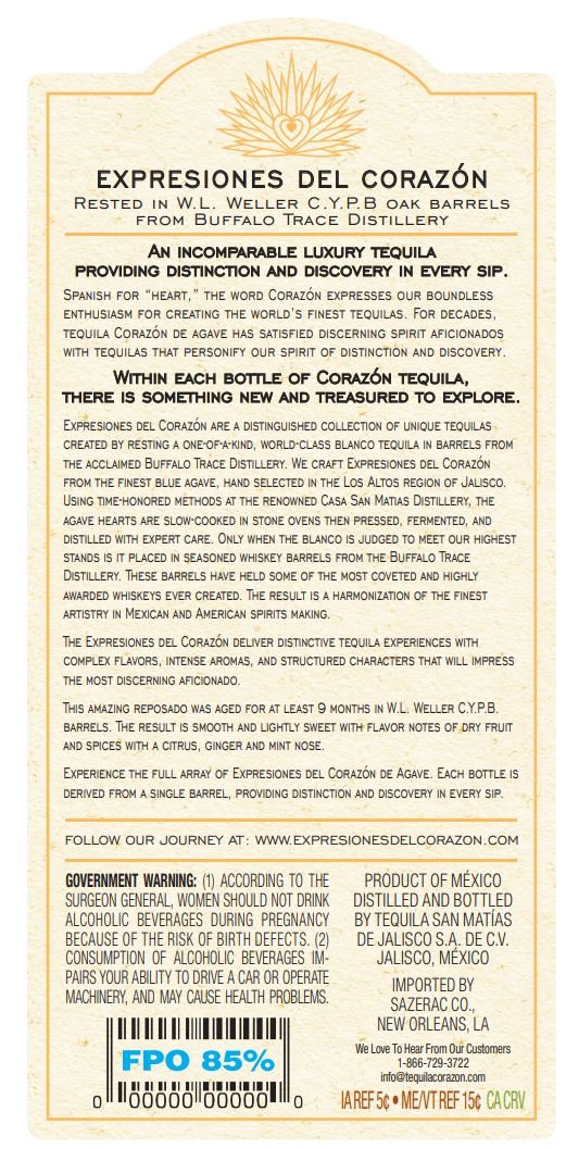 Corazón de Agave Expresiones Reposado Tequila Aged in W.L. Weller C.Y.P.B. Barrels