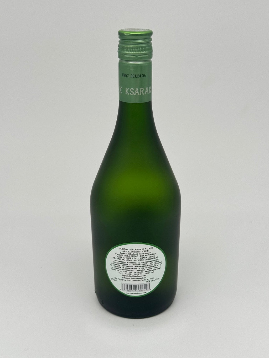Encased in a sleek frosted green bottle, Ksarak Arak delivers a bold, aromatic profile with a clean, elegant finish — a hallmark of Lebanon’s finest distillation traditions.