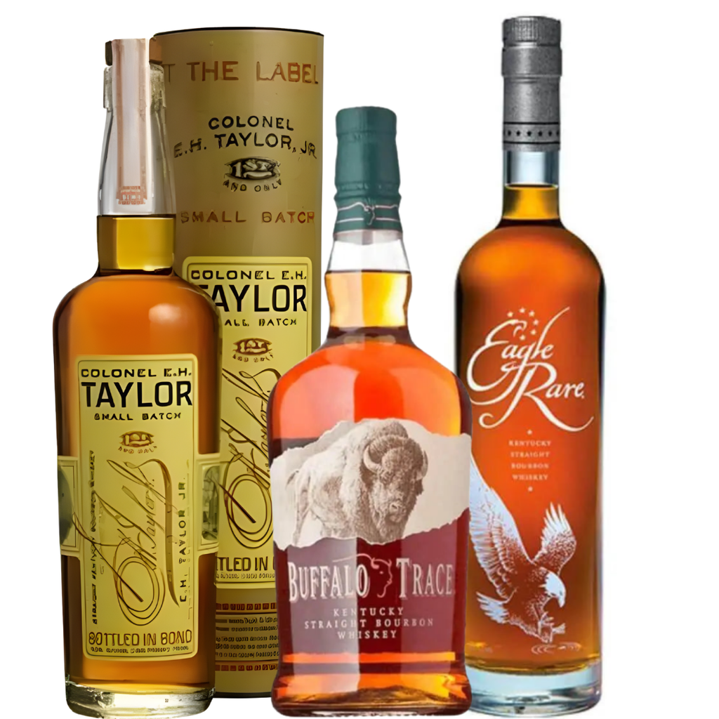 This trio allows for an incredible side-by-side exploration of some of Buffalo Trace's most sought-after labels. Start with Buffalo Trace for a smooth introduction, move to Eagle Rare for aged complexity, and finish with the high-proof structure of Colonel E.H. Taylor.