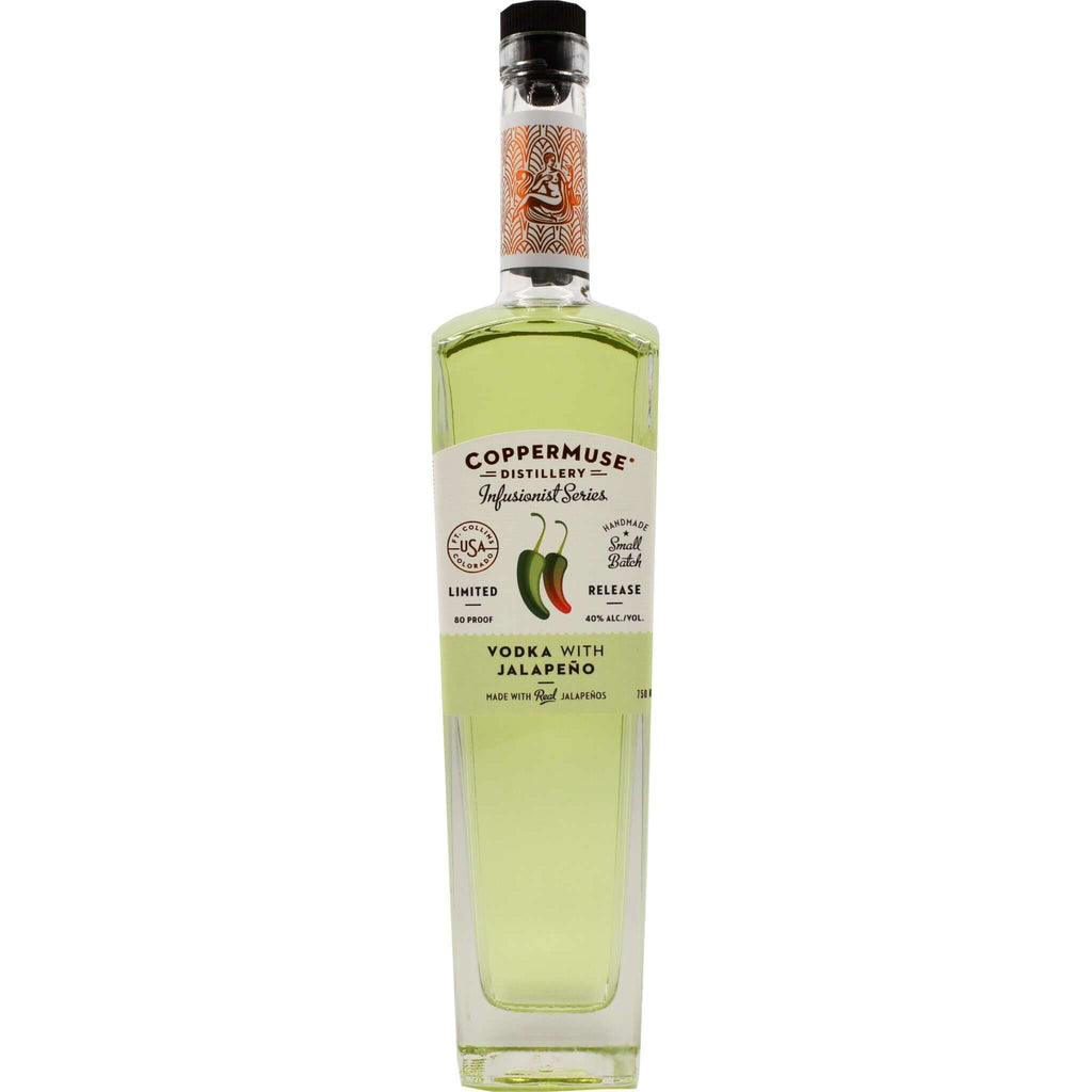 Sensory Description: Coppermuse 'Infusionist Series' Jalapeno Vodka enchants the senses with the characteristic bite and flavor of garden-fresh jalapeño peppers. This vodka offers a perfect balance of spice, delivering a pleasant warmth and vibrant pepper notes without overwhelming the palate.