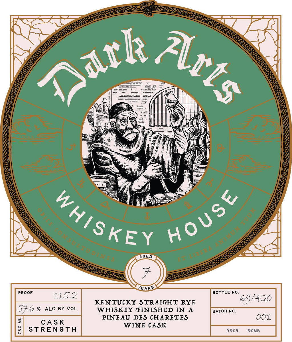 Unleash the extraordinary with Dark Arts Whiskey House 7-Year Kentucky Straight Rye, a rare, cask strength expression aged for 7 years and finished in Pineau des Charentes wine casks. Bottled at a bold 57.6% ABV (115.2 proof), this limited edition whiskey is handcrafted in Kentucky and embodies alchemical mastery with every pour.