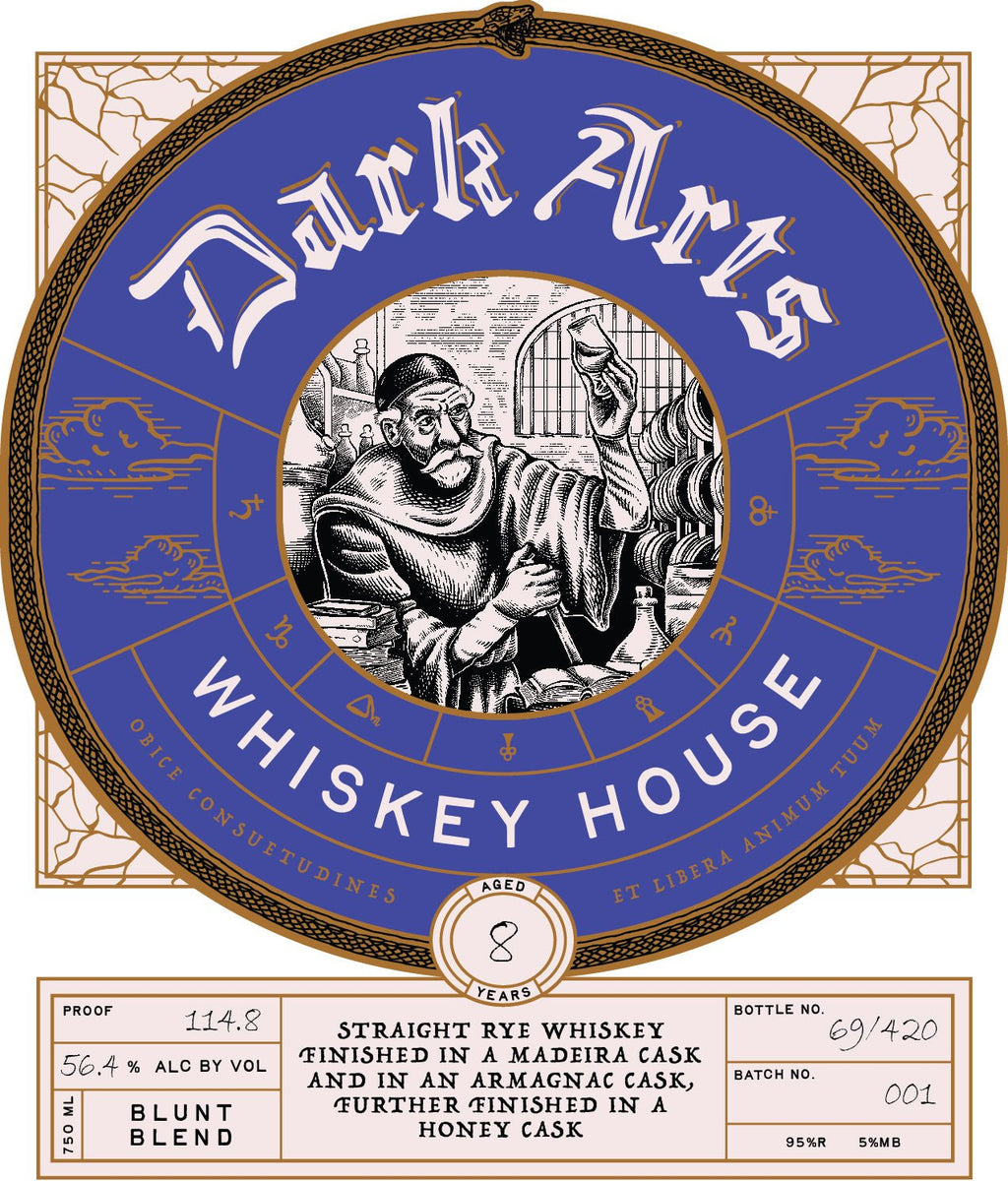 Unleash bold complexity with Dark Arts Whiskey House Blunt Blend, an 8-year-old straight rye whiskey masterfully finished in a trilogy of rare casks: Madeira wine barrels, Armagnac casks, and honey casks. This limited edition triple-cask rye is a testament to innovative finishing techniques and showcases the alchemical artistry of Dark Arts’ distilling team in Sparta, Kentucky.