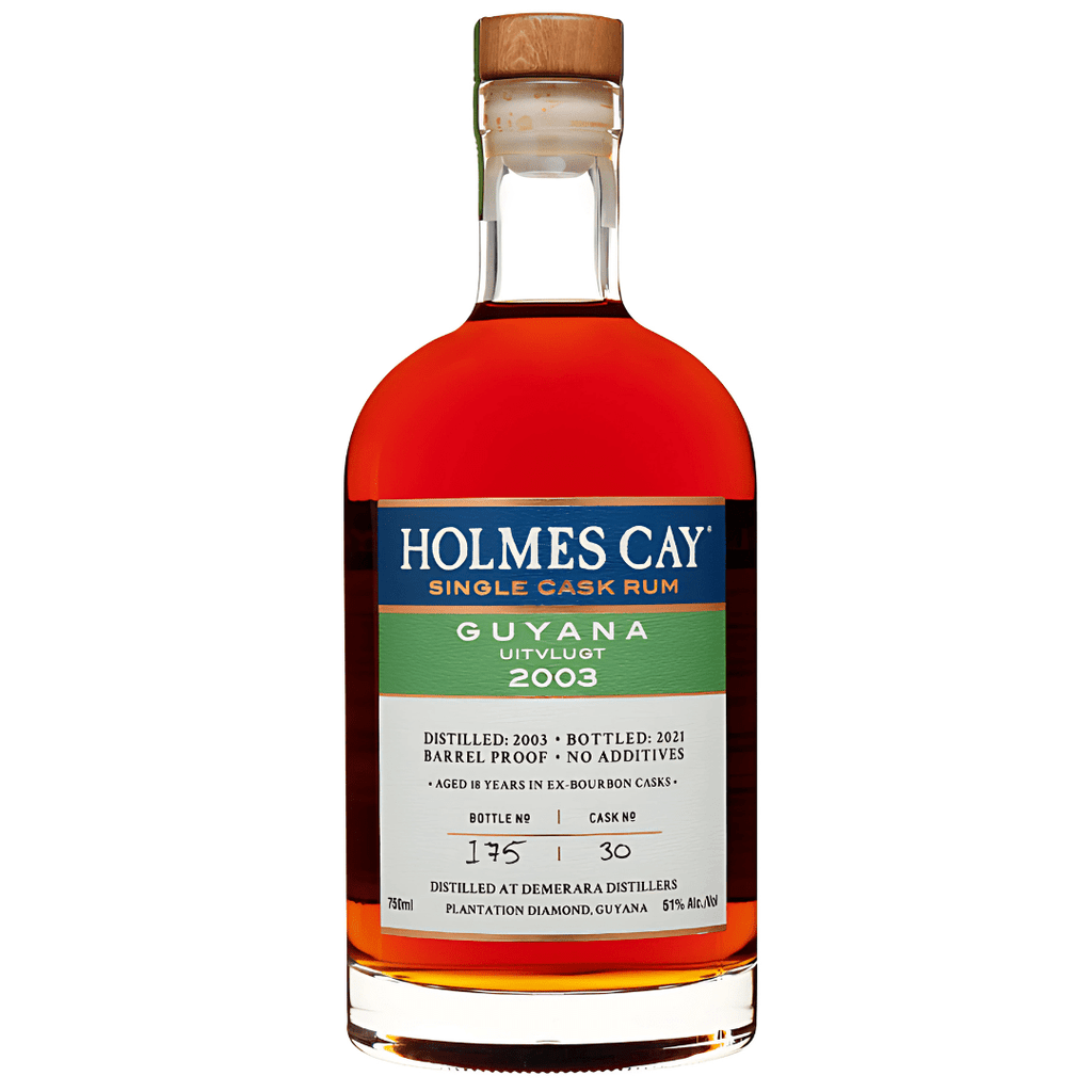 Introducing a true rarity from the Demerara tradition: the Holmes Cay Guyana Uitvlugt 2003 Single Cask Rum. Distilled at Demerara Distillers and aged for 18 full years in ex-bourbon casks, this release is a tribute to the long-lost Uitvlugt Distillery, known for producing some of the most legendary rums in the world.