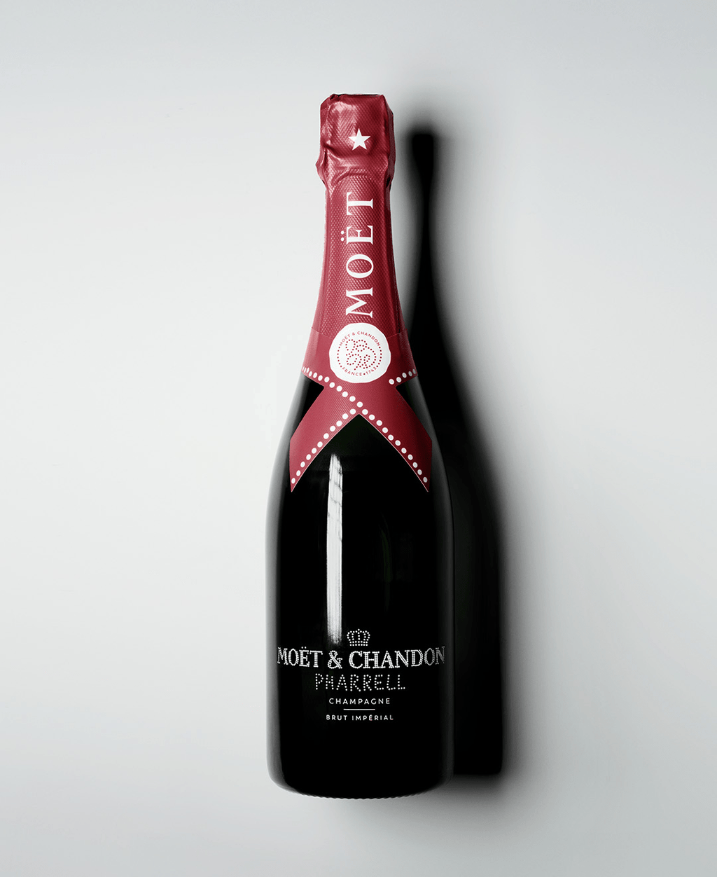This bottle is a limited-edition collaboration with Pharrell Williams, featuring a custom-designed aesthetic while maintaining the beloved Moët & Chandon Brut Impérial inside.