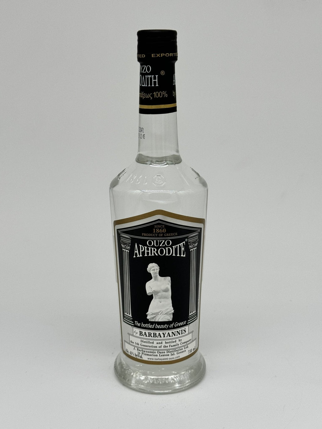 Ouzo Aphrodite by Barbayannis is a premium Greek ouzo that represents both the beauty of Greece and the mastery of traditional distillation. Crafted on the island of Lesvos by the Barbayannis family, which has been producing ouzo since 1860, this 750mL spirit offers a refined, full-bodied flavor derived from 100% copper still distillation.
