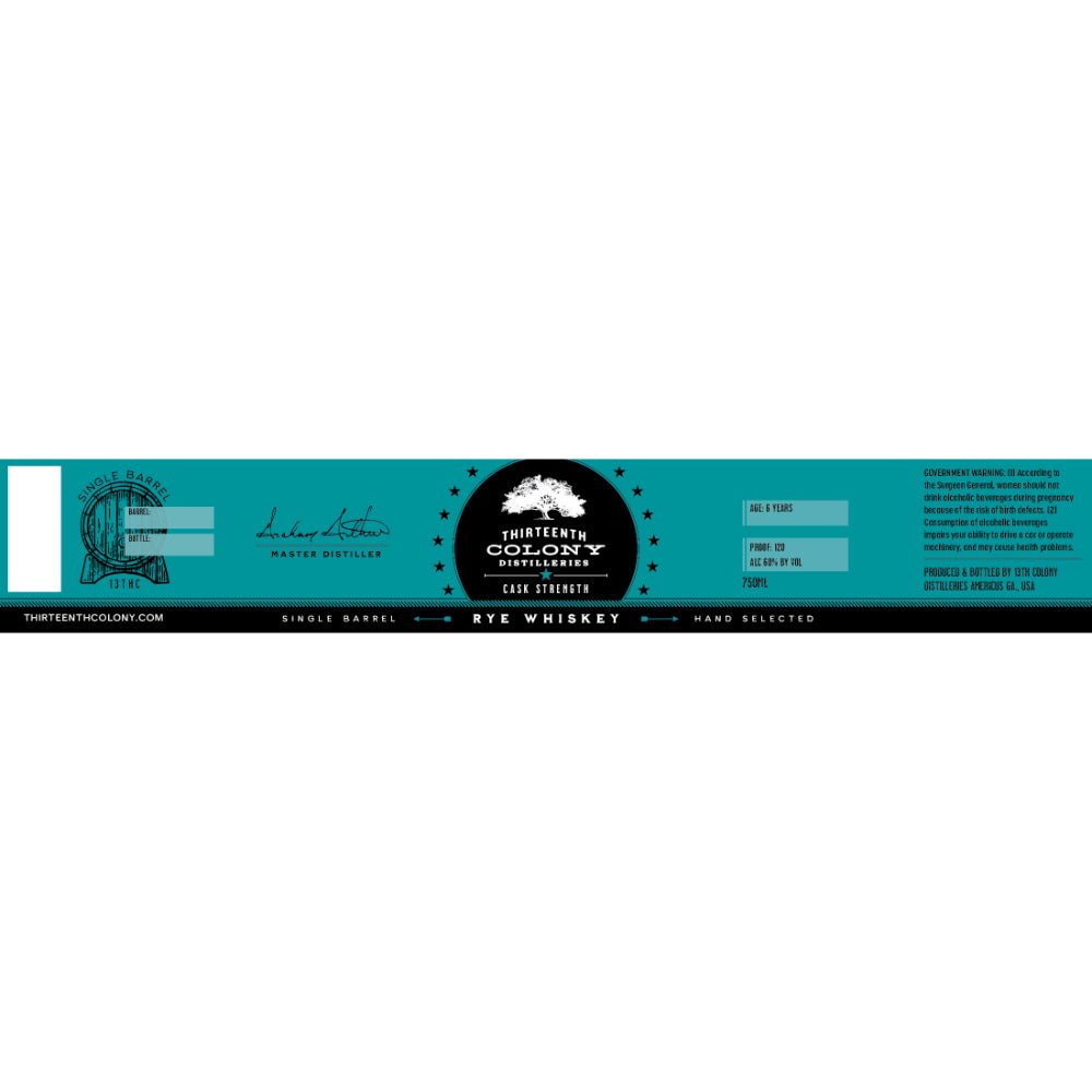 Thirteenth Colony Distilleries Single Barrel Cask Strength Rye