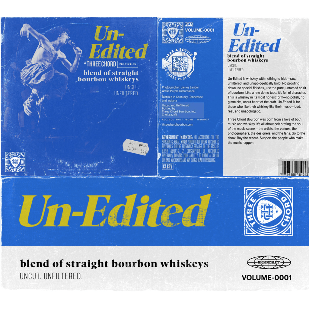 Un-Edited isn’t softened or smoothed—there are no gimmicks, just an unapologetically real spirit that echoes the grittiness of a raw demo tape. The whiskey offers a deep, robust character reflective of Three Chord’s mission: to blend the artistry of music with the tradition of American whiskey.